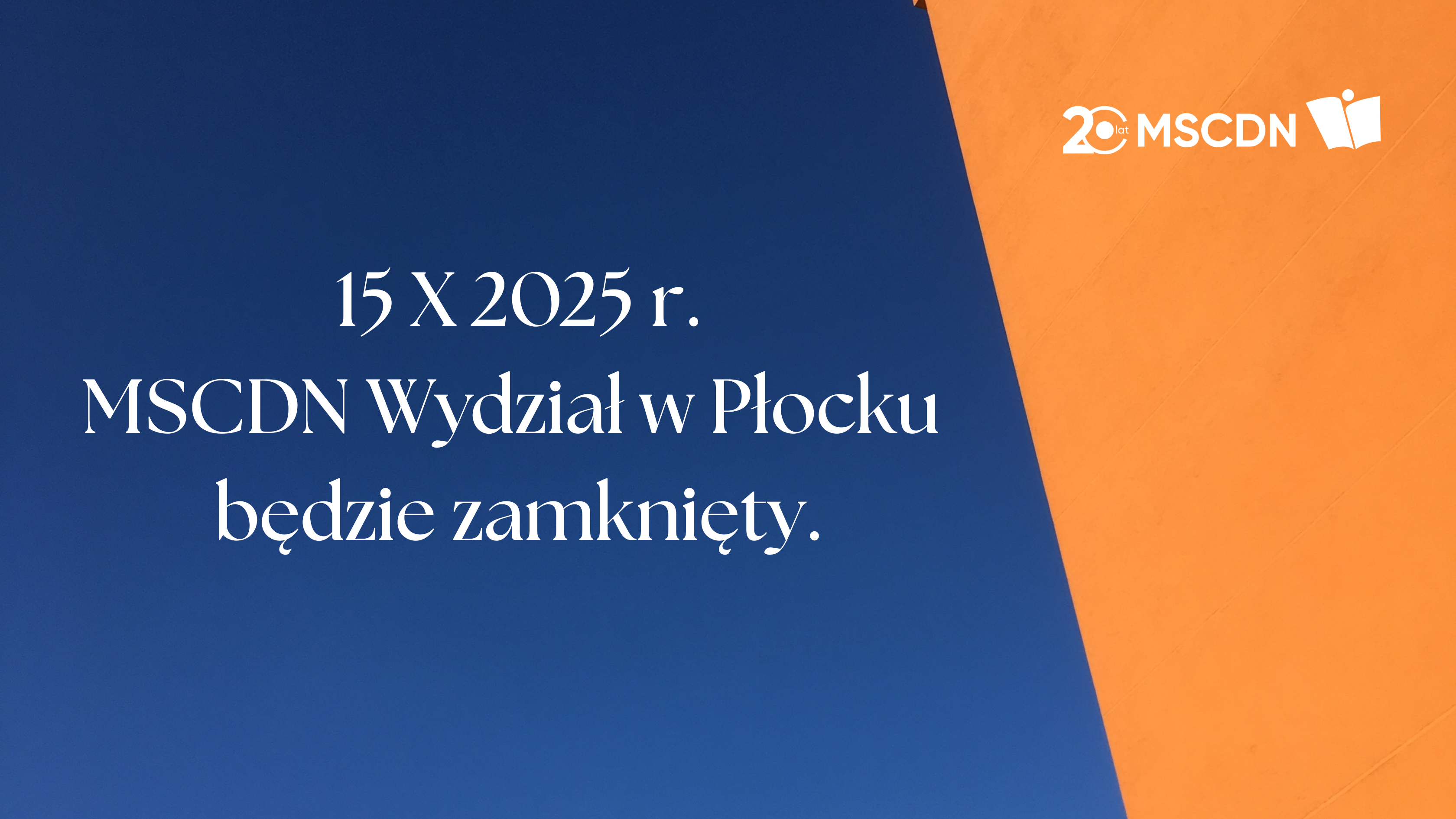 Szanowni Państwo, w związku ze szkoleniem organizowanym dla wszystkich pracowników, w dniu 15 października 2025 r. nasz Wydział będzie zamknięty.