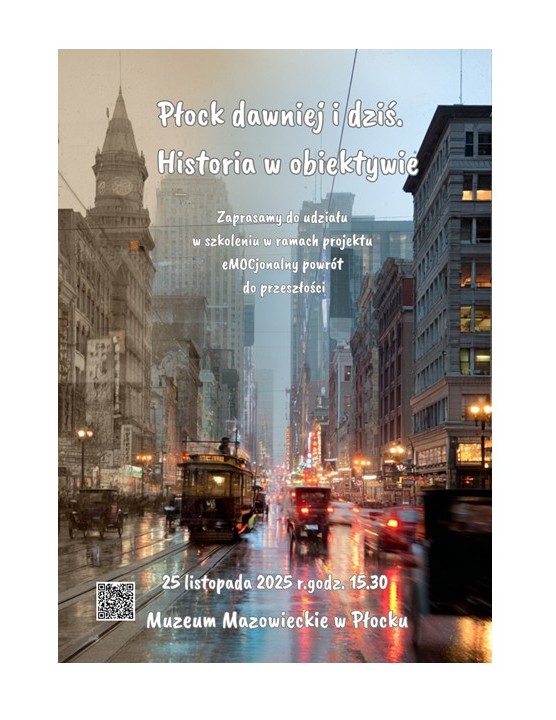 Po emocjonującym Balu niepodległościowym przyszedł czas na realizację drugiej części projektu eMOCjonalny powrót do przeszłości. Tym razem zapraszamy do udziału w szkoleniu Płock dawniej i dziś. Historia w obiektywie, które odbędzie się 25 listopada 2025 r. w Muzeum mazowieckim w Płocku.
