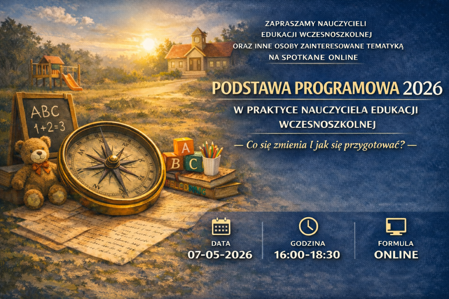 Zapraszamy nauczycieli edukacji wczesnoszkolnej oraz inne osoby zainteresowane tematyką na seminarium online: Podstawa programowa 2026 w praktyce nauczyciela edukacji wczesnoszkolnej – co się zmienia i jak się przygotować?