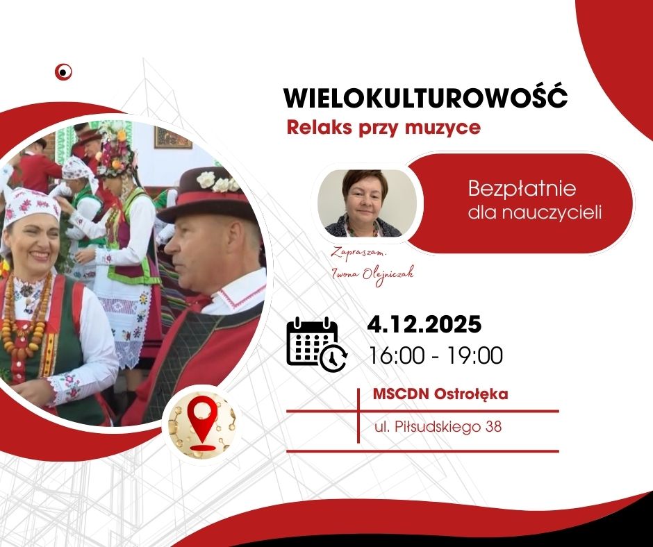 Podczas spotkania, na które zapraszamy, porozmawiamy o naszym regionie przy dźwiękach muzyki na żywo w wykonaniu kurpiowskiej kapeli, poznamy tajniki kultury Tanzanii, słuchając muzyki rodem z Afryki oraz podsumujemy projekt “Wielokulturowo w polskiej szkole”. Kurpiowsko – tanzańska uczta muzyczna odbędzie się 4 grudnia o godzinie 16.00 w MSCDN w Ostrołęce. Naszymi gośćmi będą kurpiowscy twórcy ludowi, misjonarz z Tanzanii i Dariusz Glinka ze swoją muzykującą Rodziną. Serdecznie zapraszamy na merytoryczne spotkanie, a jednocześnie chwile relaksu przy muzyce. Zapewniamy wspólne śpiewanie i rozmowy w doborowym towarzystwie. Zainteresowanych prosimy o zapisanie się poprzez link umieszczony poniżej:https://system.mscdn.pl/zewnetrzne/zgloszenie/id/29038/o/-2/w/Ostro%C5%82%C4%99ka