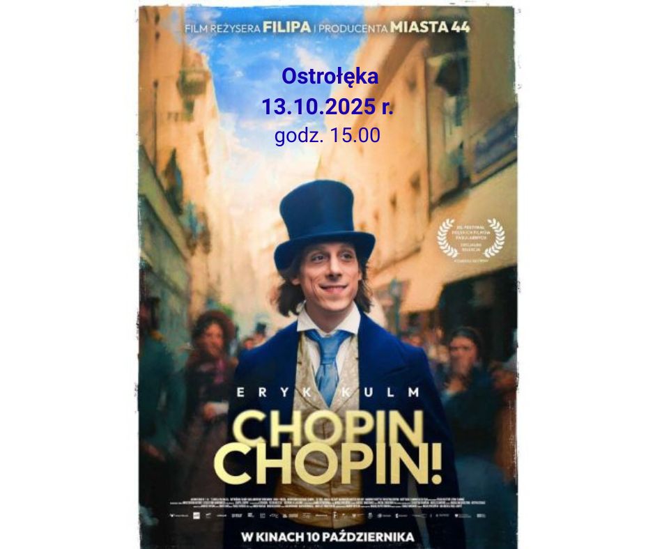 „Chopin, Chopin!” to nie tylko biografia legendarnego kompozytora, ale prawdziwa filmowa epopeja, która przeniesie nas w XIX wiek. Budżet filmu wyniósł prawie 72 mln złotych! Zdjęcia z międzynarodową obsadą zrealizowano we Francji, Hiszpanii i w Polsce. Bezpłatny dla nauczycieli pokaz najnowszego filmu Michała Kwiecińskiego odbędzie się w Ostrołęce już 13 października o godz. 15.00 w sali kinowej Muzeum Żołnierzy Wyklętych. Zapisz się już dziś: https://system.mscdn.pl/zewnetrzne/zgloszenie/id/29545/o/-2/w/Ostro%C5%82%C4%99ka Jest rok 1835 w Paryżu. Fryderyk Chopin ma 25 lat i jest ulubieńcem paryskich salonów, arystokracji i króla Francji. Żadne znaczące wydarzenie nie może odbyć się bez jego udziału. Widzimy go podczas nocnych eskapad i afterparty po koncertach. Zazwyczaj pełnego energii, przykrywającego chorobę żartem. Jego życie ucieka, jednak Fryderyk nie zwalnia. Tworzy swoje największe dzieła, czasem na specjalne zamówienie, a jednocześnie z powodów finansowych, udziela lekcji gry na fortepianie. Jest podziwiany przez przyjaciół i uwielbiany przez kobiety. Z czasem jednak odkrywa, że najważniejsza w jego życiu jest muzyka. W roli głównej Eryk Kulm. Matkę Chopina gra Maja Ostaszewska. Na 50. Festiwalu Polskich Filmów Fabularnych w Gdyni nagrodą za scenografię tego obrazu uhonorowano Katarzynę Sobańską i Marcela Sławińskiego, a za kostiumy – Magdalenę Biedrzycką i Justynę Stolarz. Teraz czekamy na 33. edycję Międzynarodowego Festiwalu Filmowy EnergaCAMERIMAGE 2025 w Toruniu, podczas którego w listopadzie „Chopin, Chopin!” na pewno otrzyma nagrodę za zdjęcia utalentowanego operatora, Michała Sobocińskiego.