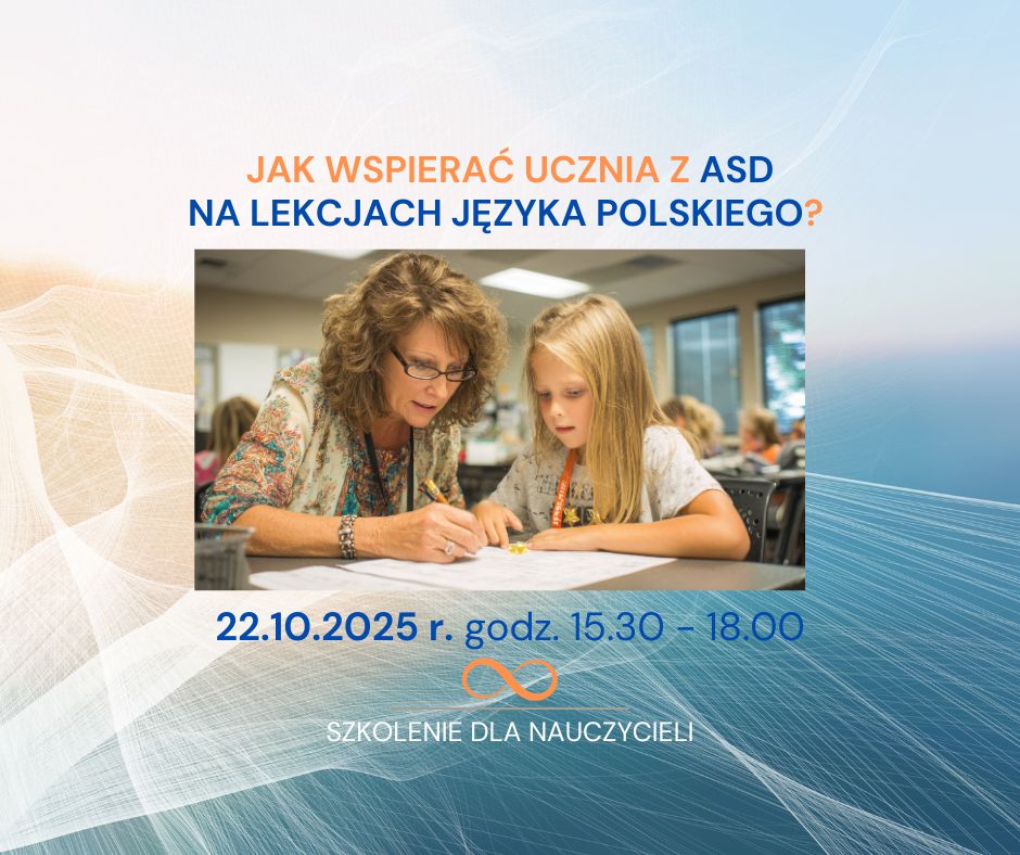 Uczniowie ze spektrum autyzmu potrzebują wsparcia na każdym przedmiocie. Najważniejsze to zrozumieć ich zachowania i wiedzieć, jak na nie odpowiadać. 22 PAŹDZIERNIKA o godz. 15.30 zapraszamy nauczycieli języka polskiego i innych zainteresowanych na stacjonarne szkolenie „Jak wspierać ucznia z ASD na lekcjach języka polskiego? Dostosowania i dobre praktyki”, które odbędzie się w siedzibie MSCDN w Ostrołęce przy ul. Piłsudskiego 38. Podczas tego seminarium dowiemy się, w jaki sposób zorganizować lekcję, jak dostosować wymagania do potrzeb uczniów z SPE i które treści dobierać, aby wszyscy uczniowie zaangażowali się w zajęcia. Zachęcamy do zapisów:https://system.mscdn.pl/zewnetrzne/zgloszenie/id/29100/o/-2/w/Ostro%C5%82%C4%99ka