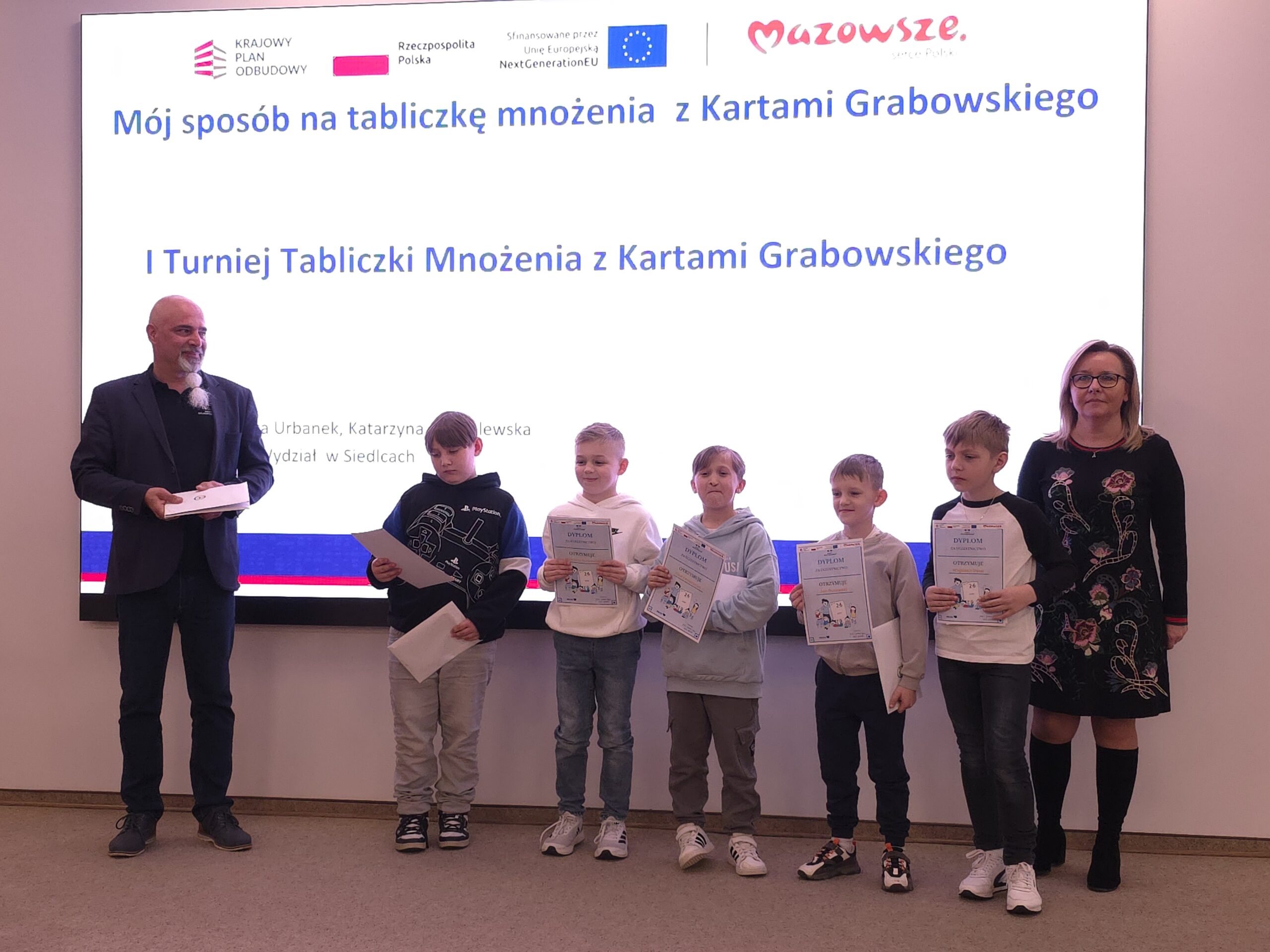 1 kwietnia 2026 r. w Mazowieckim Samorządowym Centrum Doskonalenia Nauczycieli Wydział w Siedlcach odbył się I TURNIEJ TABLICZKI MNOŻENIA Z KARTAMI GRABOWSKIEGO dla uczniów z klas II-III ze szkół podstawowych biorących udział w szkoleniu MÓJ SPOSÓB NA TABLICZKĘ MNOŻENIA Z KARTAMI GRABOWSKIEGO.
