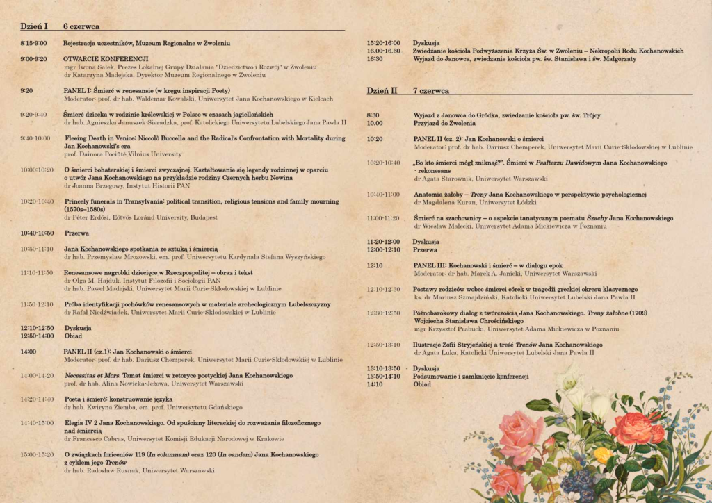 Serdecznie zapraszamy na konferencję „Jan Kochanowski i śmierć w renesansie”, organizowaną w dniach 6-7 czerwca br. przez LGD Stowarzyszenie „Dziedzictwo i Rozwój” oraz Muzeum Regionalne w Zwoleniu.