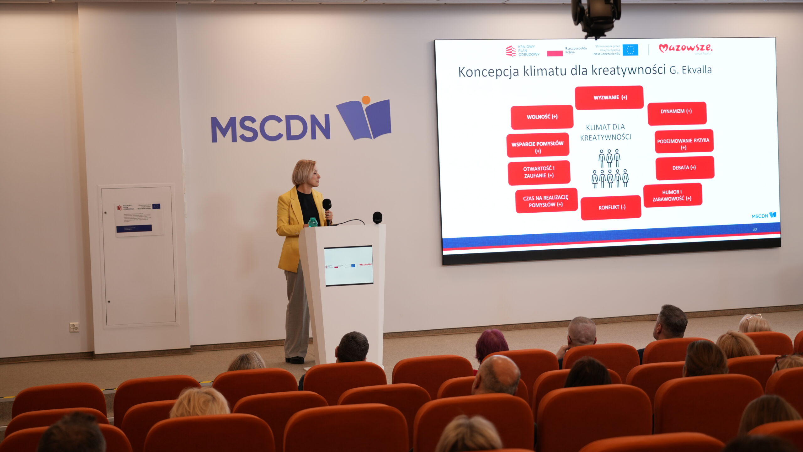 Wydarzenie rozpoczął Paweł Trojanowski (WUP Warszawa, Filia w Siedlcach) wystąpieniem „Kompetencje przyszłości a rynek pracy w dobie AI”, w którym omówił znaczenie nowych kompetencji w zmieniającym się świecie pracy. Następnie dr Ewa Wiśniewska (APS w Warszawie) w prelekcji „Klimat dla kreatywności” podkreśliła rolę szkoły w rozwijaniu twórczego myślenia.