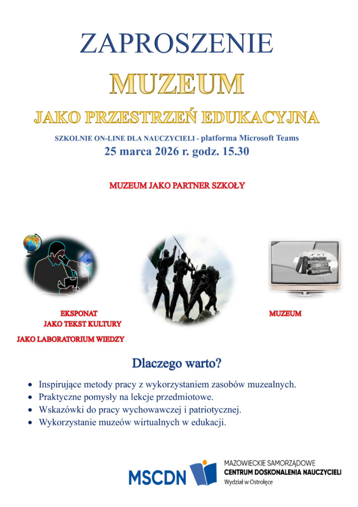 - Inspirujące metody pracy z wykorzystaniem zasobów muzealnych.