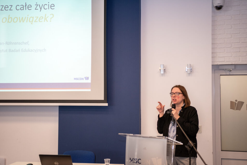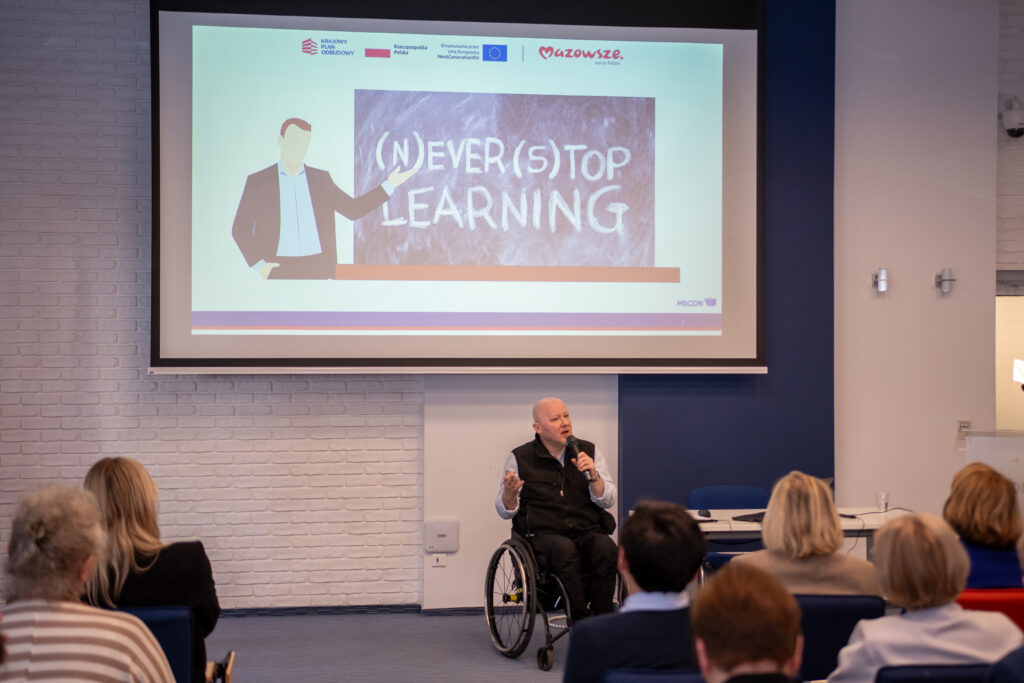 Pierwsza część spotkania skupiła się na teoretycznych i praktycznych aspektach Lifelong Learning (LLL): Magdalena Radwan-Röhrenschef (Instytut Badań Edukacyjnych) postawiła prowokacyjne pytanie o naturę uczenia się przez całe życie, analizując, czy jest ono przywilejem, czy już cywilizacyjnym obowiązkiem. Prof. dr hab. Grażyna Prawelska-Skrzypek (Fundacja Małopolska Izba Samorządowa) przedstawiła rolę Lokalnych Ośrodków Wiedzy i Edukacji (LOWE) jako fundamentów kapitału społecznego w małych ojczyznach. Ważnym punktem programu konferencji była prezentacja wyników badań przeprowadzonych na zlecenie MSCDN. Dr Renata Stoczkowska (MSCDN Wydział w Warszawie) omówiła specyficzne potrzeby rozwojowe nauczycieli u progu zakończenia aktywności zawodowej, rzucając nowe światło na zarządzanie wiekiem w oświacie. Z kolei Tomasz Garstka (Fundacja Wsparcie i Rozwój) wskazał na nierozerwalny związek między ciągłym rozwojem a osobistym poczuciem dobrostanu.