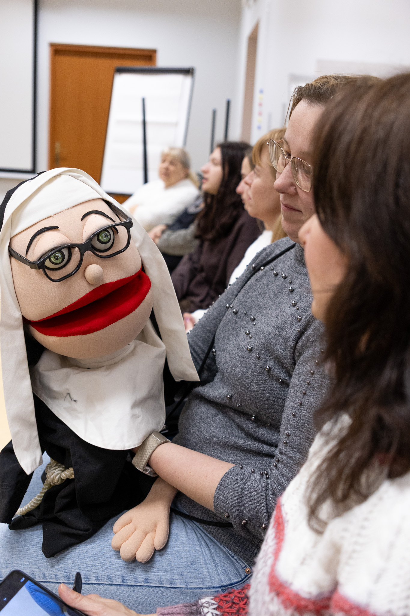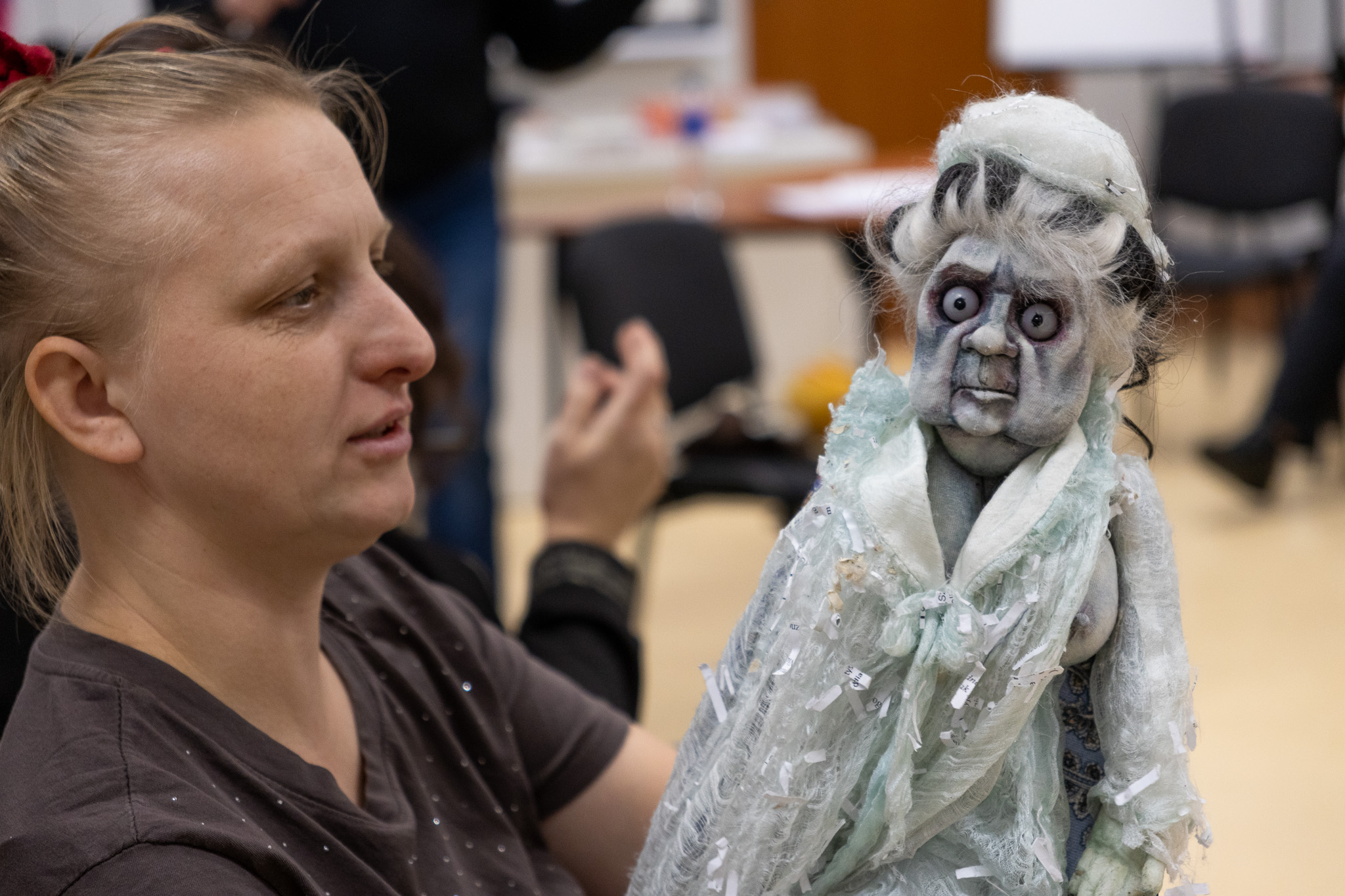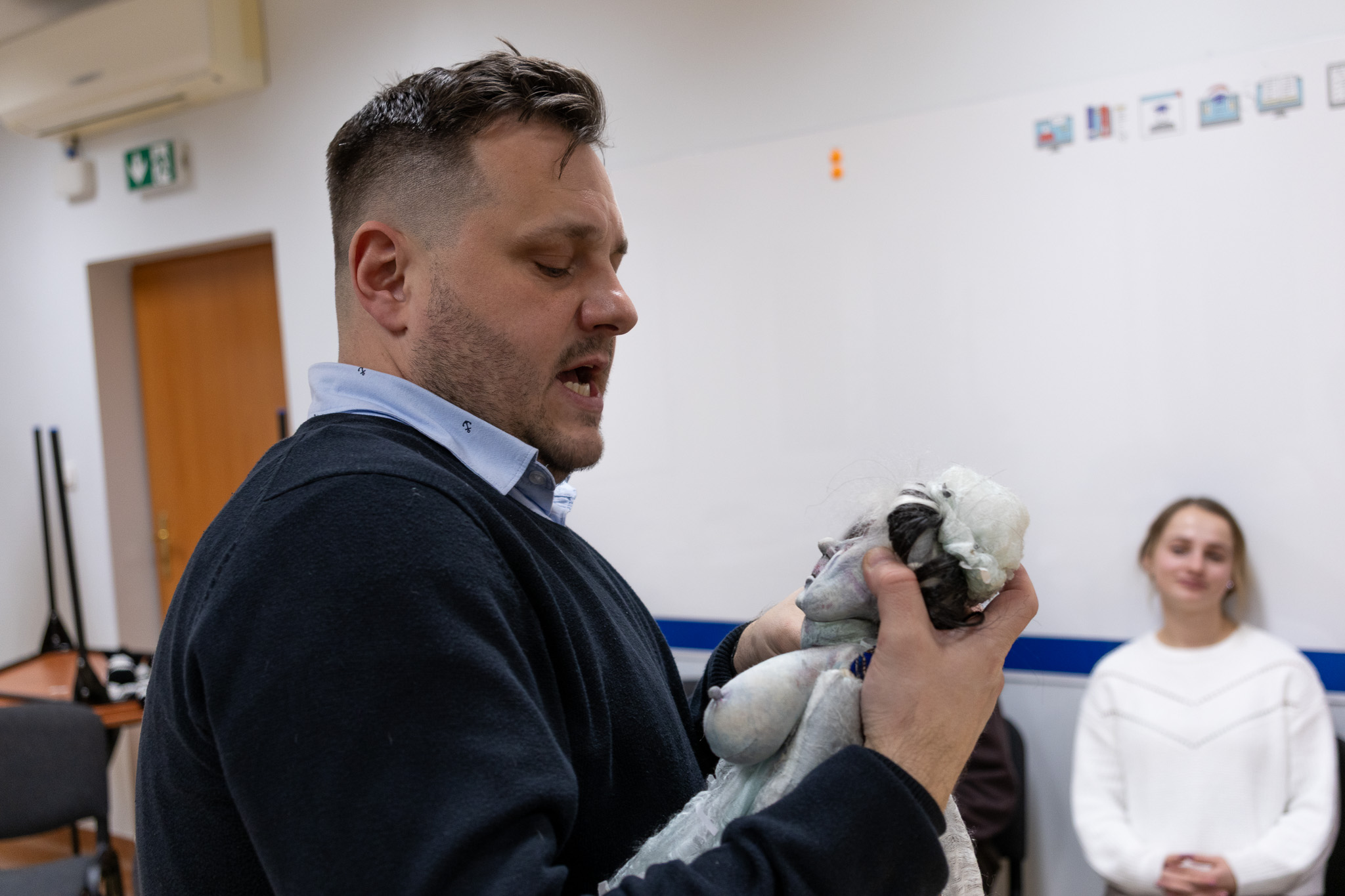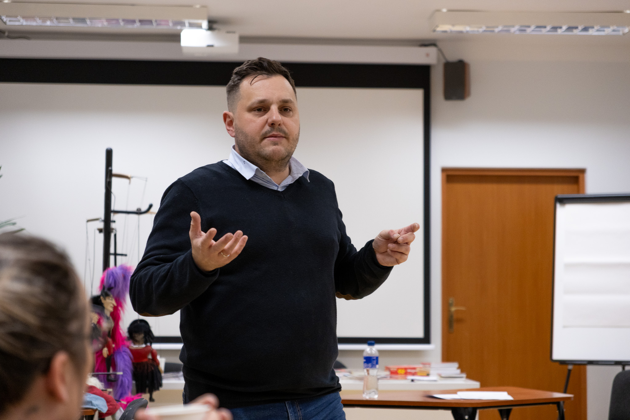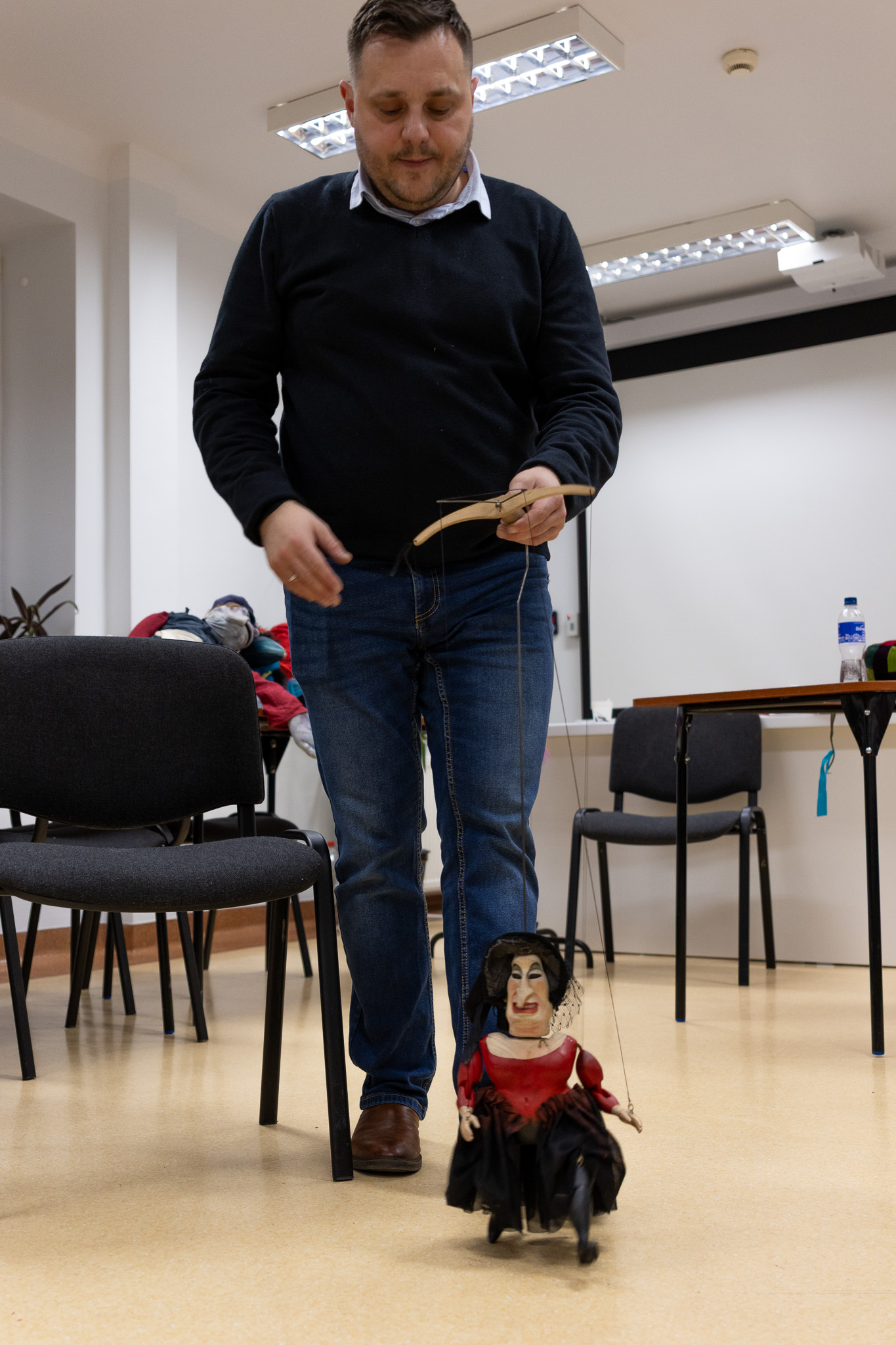 Warsztaty poprowadził Przemysław Bosek – aktor Teatr Powszechny im. J. Kochanowskiego w Radomiu, nauczyciel, logopeda i arterapeuta, od lat pracujący z dziećmi, młodzieżą oraz nauczycielami. Prowadzący zaprezentował praktyczne przykłady wykorzystania lalek w edukacji, terapii oraz działaniach teatralnych, podkreślając ich rolę w rozwijaniu wyobraźni, komunikacji i kompetencji emocjonalnych uczniów.